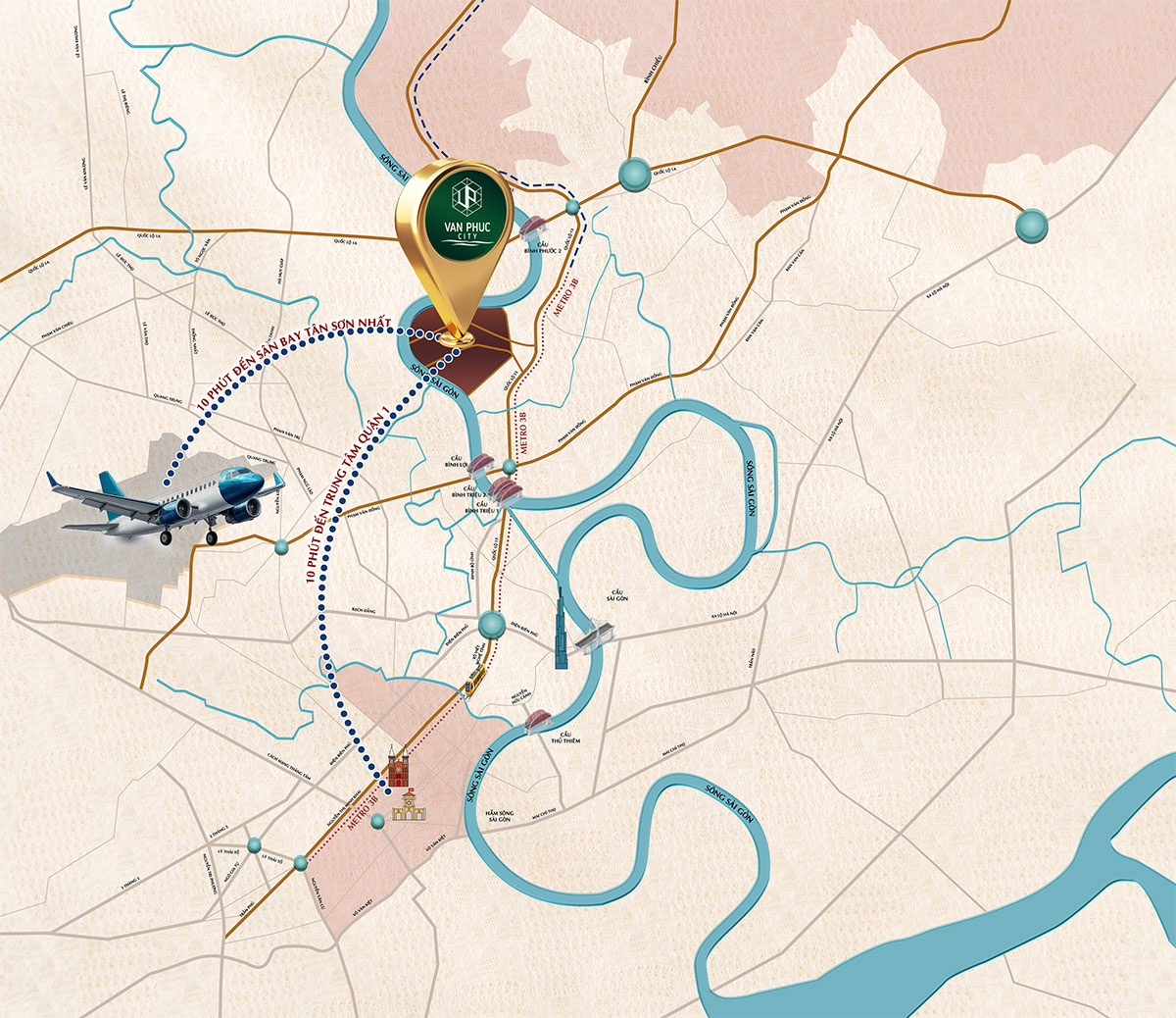 Nằm ngay trên Quốc lộ 13, cách Quận 1 (cũ) và sân bay TSN chỉ 10 phút di chuyển - Quảng trường Diamond thuận tiện cho khách mời, nhân viên và đối tác.